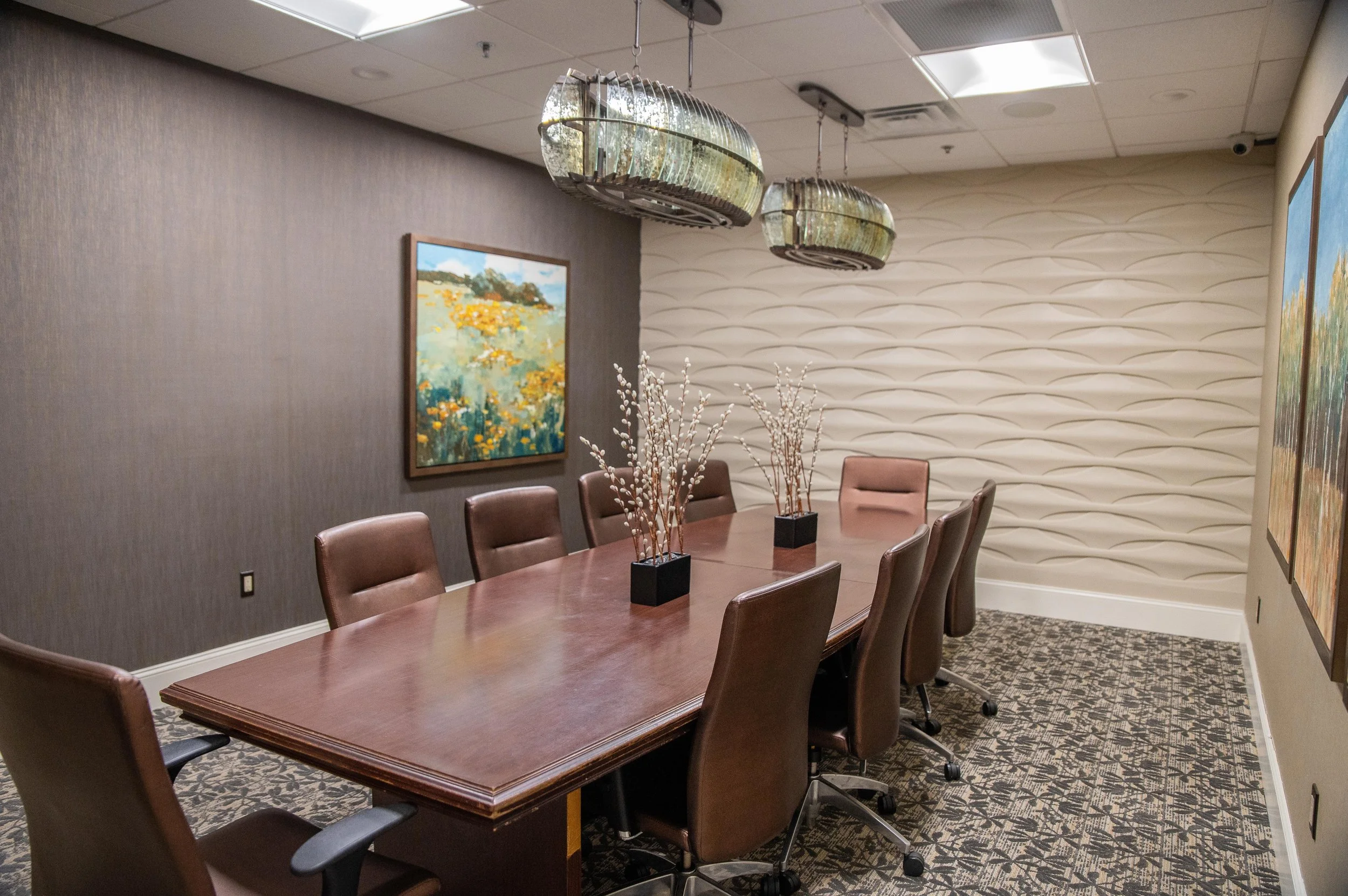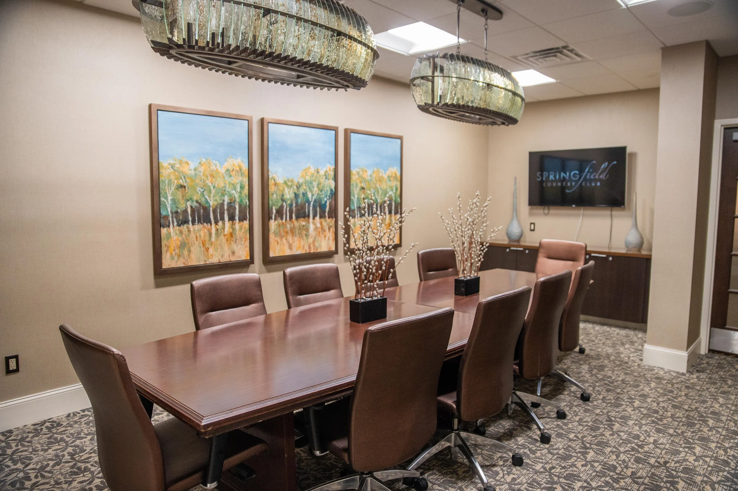The Commissioner Room is one of three new rooms recently added to the ground level and is adorned with modern furnishings and crystal light fixtures.