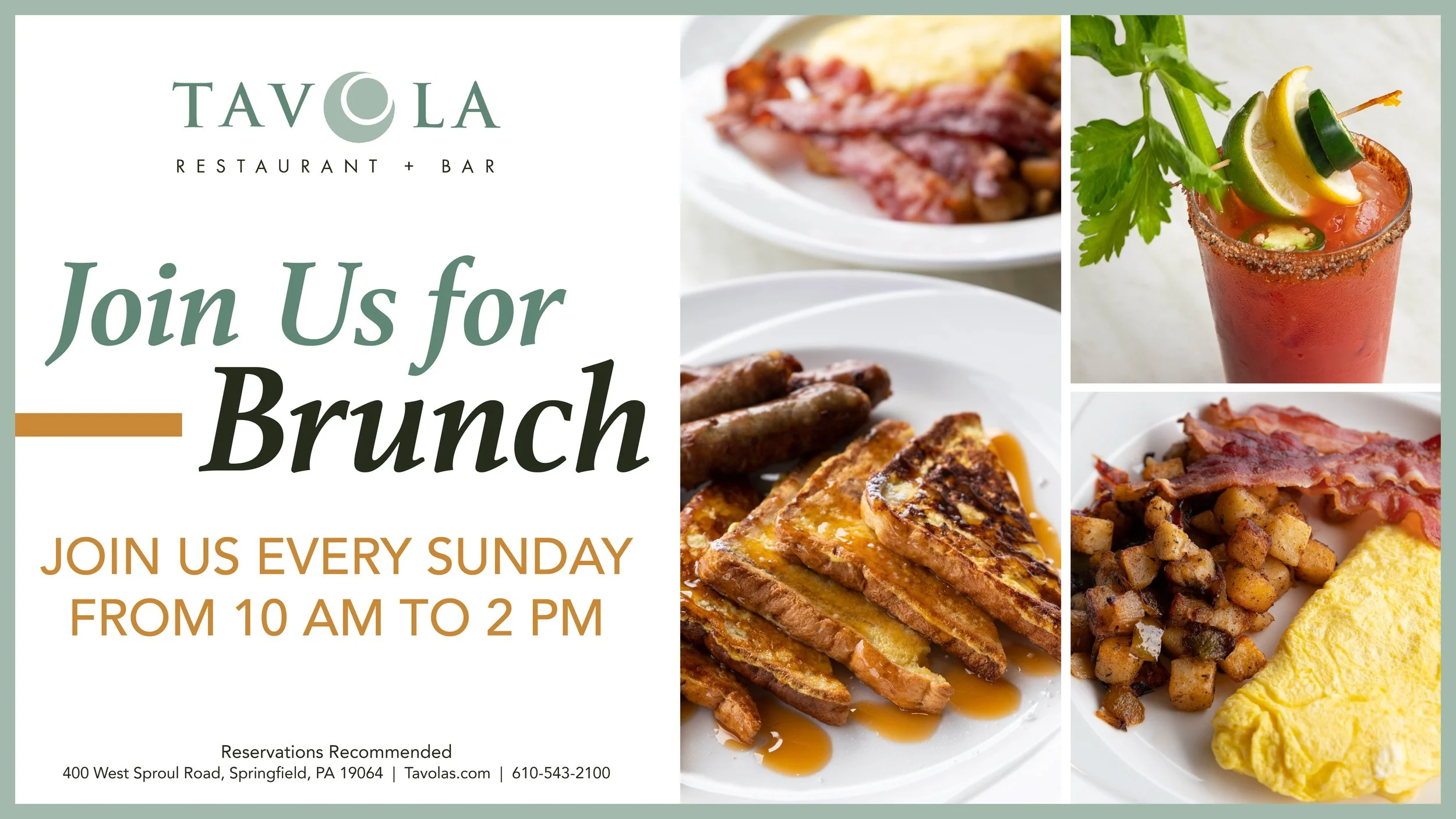 Our Brunch Buffet is back at Tavola Restaurant + Bar! Join us every Sunday from 10 AM to 2 PM for a selection of savory and sweet dishes.